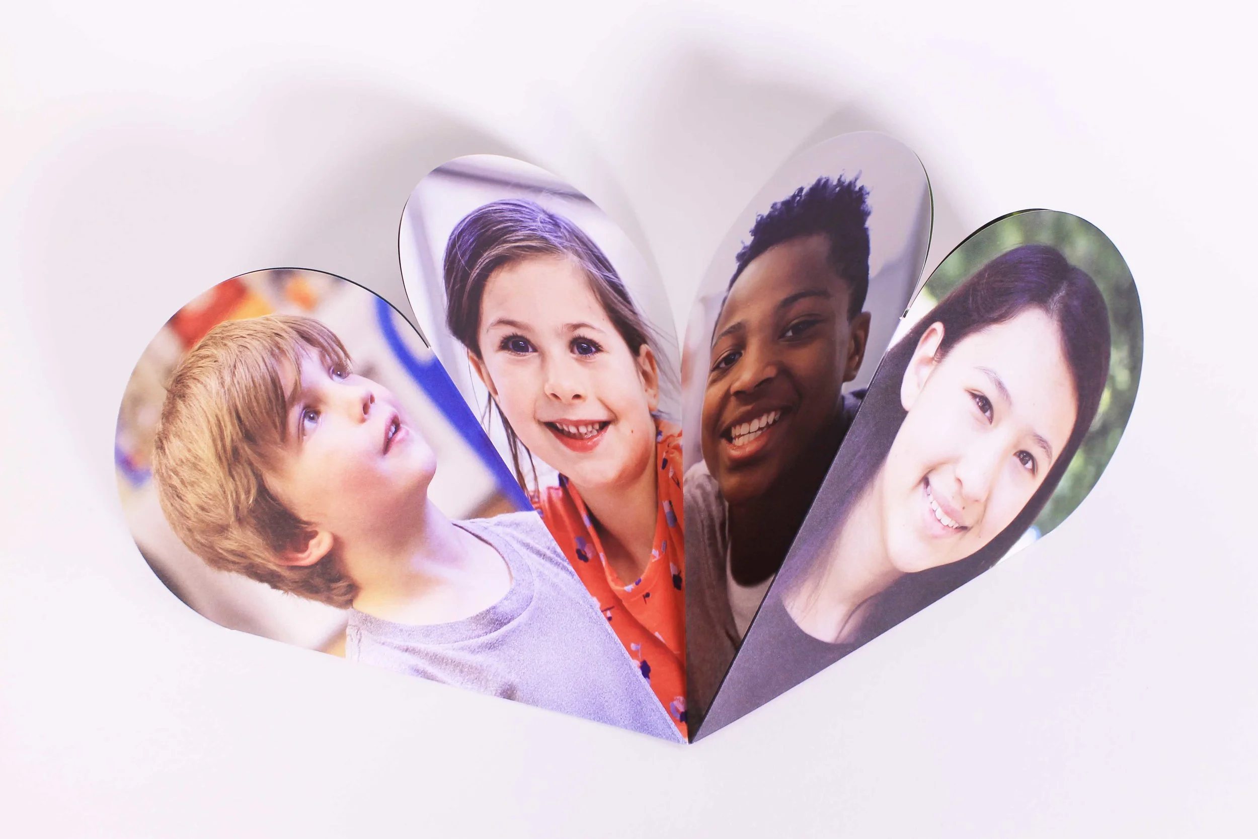 Capitol Hill Day School view book, opened once into the "Who we are" bio, as well as in the shape of a heart!