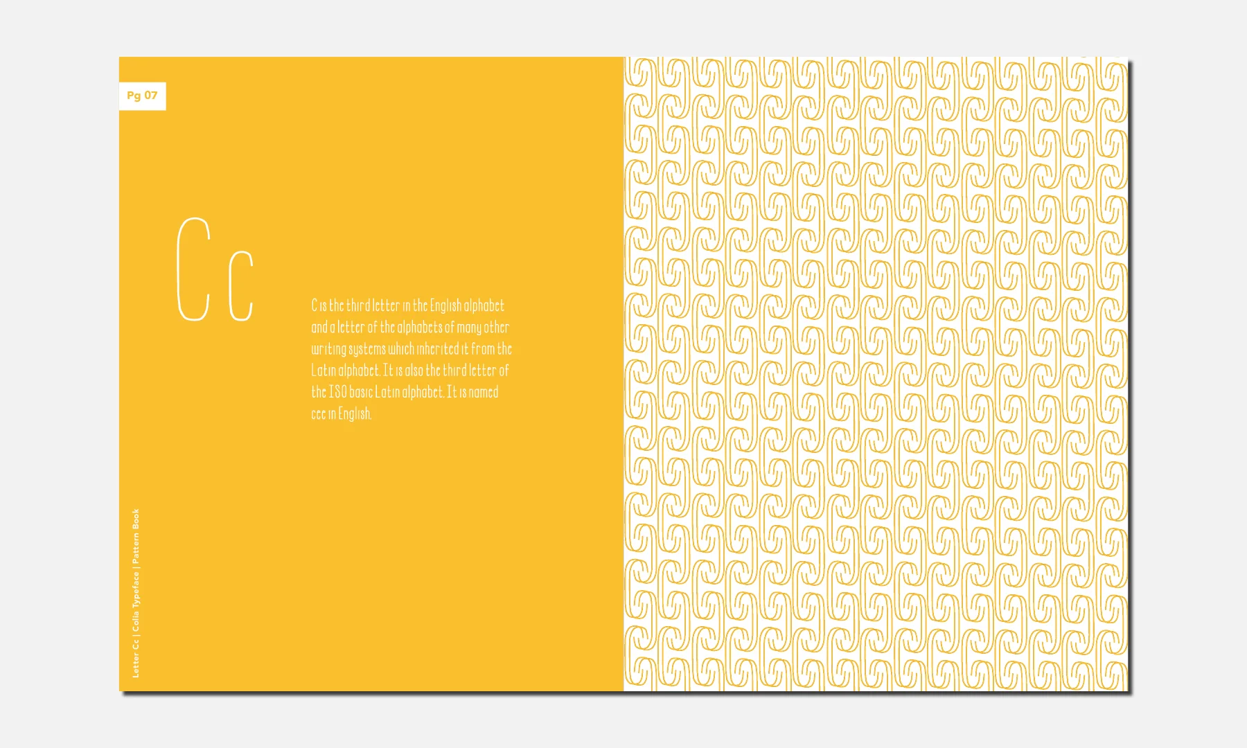 A book that displays a homemade typeface by yours truly! It includes patterns made with the letter forms from the Colia font collection from A-Z.